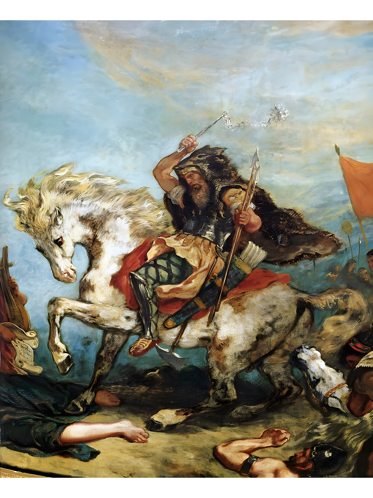 Attila and his Hordes Overrun Italy and the Arts, de 1843, é uma obra de Eugène Delacroix. Ela é, sem dúvida, representativa do Romantismo francês. Nesta pintura, o artista retrata a invasão de Átila, o Huno, à Itália. Seu objetivo principal é explorar o drama histórico, o movimento e a intensidade. Para isso, Delacroix cria uma composição caótica e cheia de figuras em desespero. Consequentemente, a obra transmite a brutalidade e a destruição do conflito.