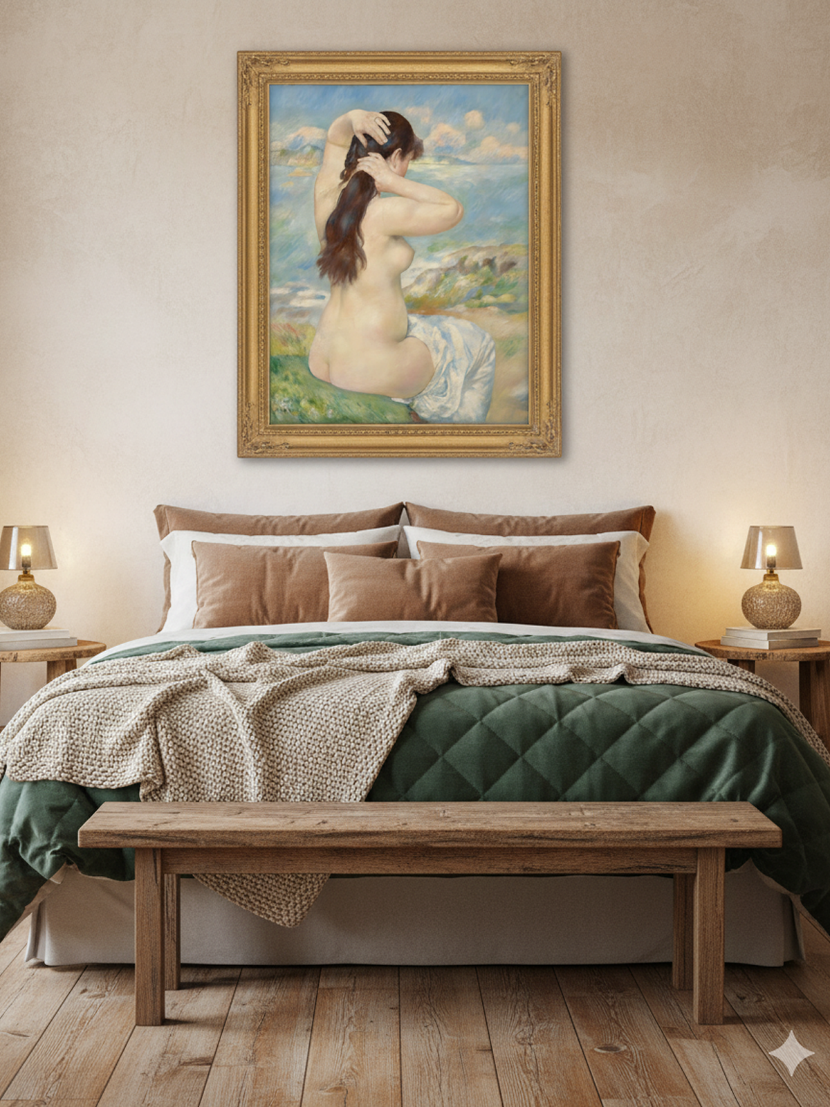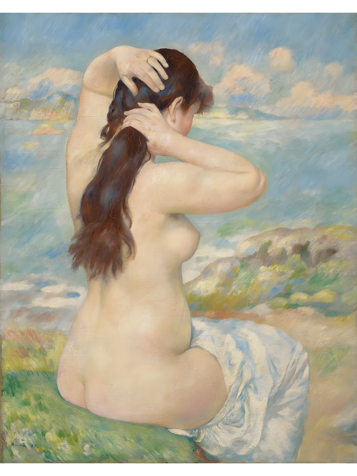 Bather Arranging her Hair, de 1885, é uma obra de Pierre-Auguste Renoir. Ela é, sem dúvida, representativa do Impressionismo francês. Nesta tela, o artista retrata uma mulher nua cuidando de seus cabelos. Seu objetivo principal é explorar a intimidade, a delicadeza e a naturalidade. Para isso, Renoir utiliza uma abordagem que celebra a beleza do corpo feminino. Consequentemente, a obra transmite uma atmosfera de serenidade e sensualidade.