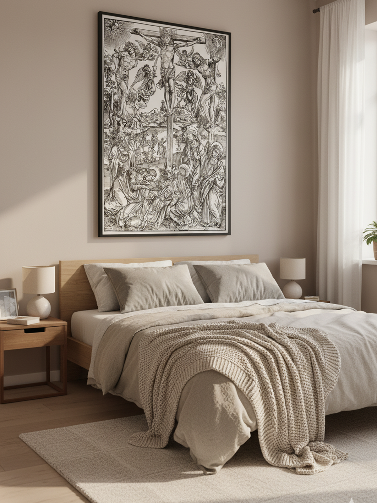 Crucifixion, de 1489, é uma obra de Albrecht Dürer. Ela é, sem dúvida, um exemplo emblemático do Renascimento alemão. Nesta xilogravura, o artista retrata a crucificação de Cristo com grande intensidade. Seu objetivo principal é explorar o drama, a espiritualidade e o simbolismo religioso. Para isso, Dürer utiliza uma técnica refinada e uma composição complexa. Consequentemente, a obra transmite o peso e a solenidade do momento.