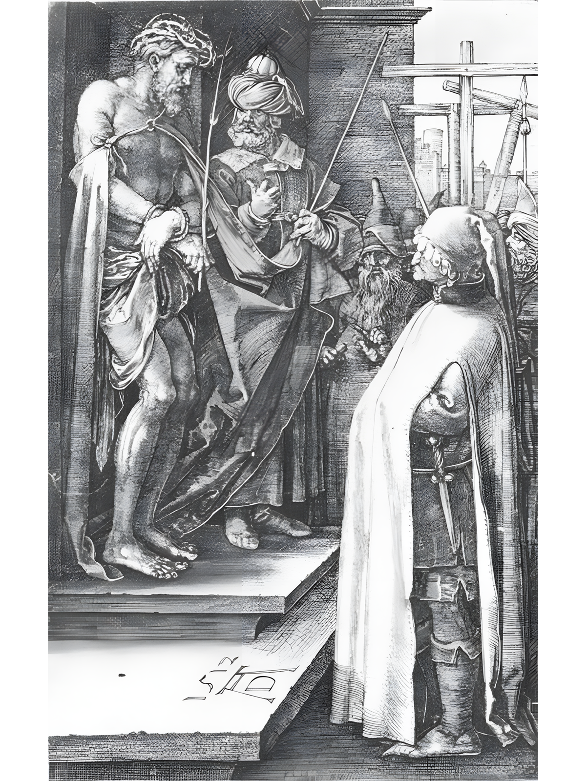 Ecce Homo (No. 8), de 1512, é uma obra de Albrecht Dürer. Ela é, sem dúvida, um exemplo emblemático do Renascimento alemão. Nesta gravura, o artista retrata Cristo sendo apresentado ao povo por Pôncio Pilatos. Seu objetivo principal é explorar o sofrimento, a expressão e o simbolismo religioso. Para isso, Dürer utiliza uma técnica refinada que transmite grande emoção. Consequentemente, a obra convida à contemplação e à empatia.
