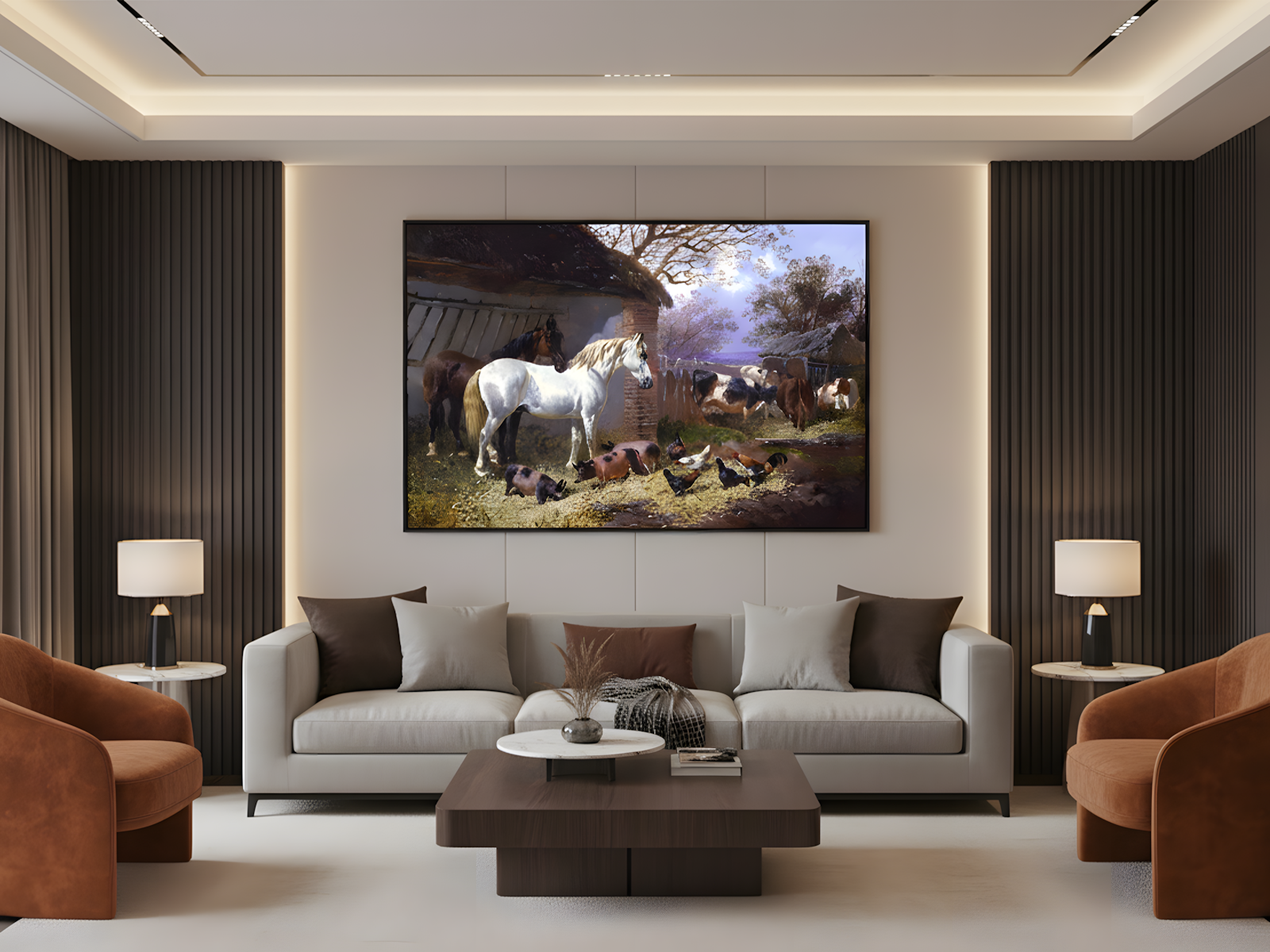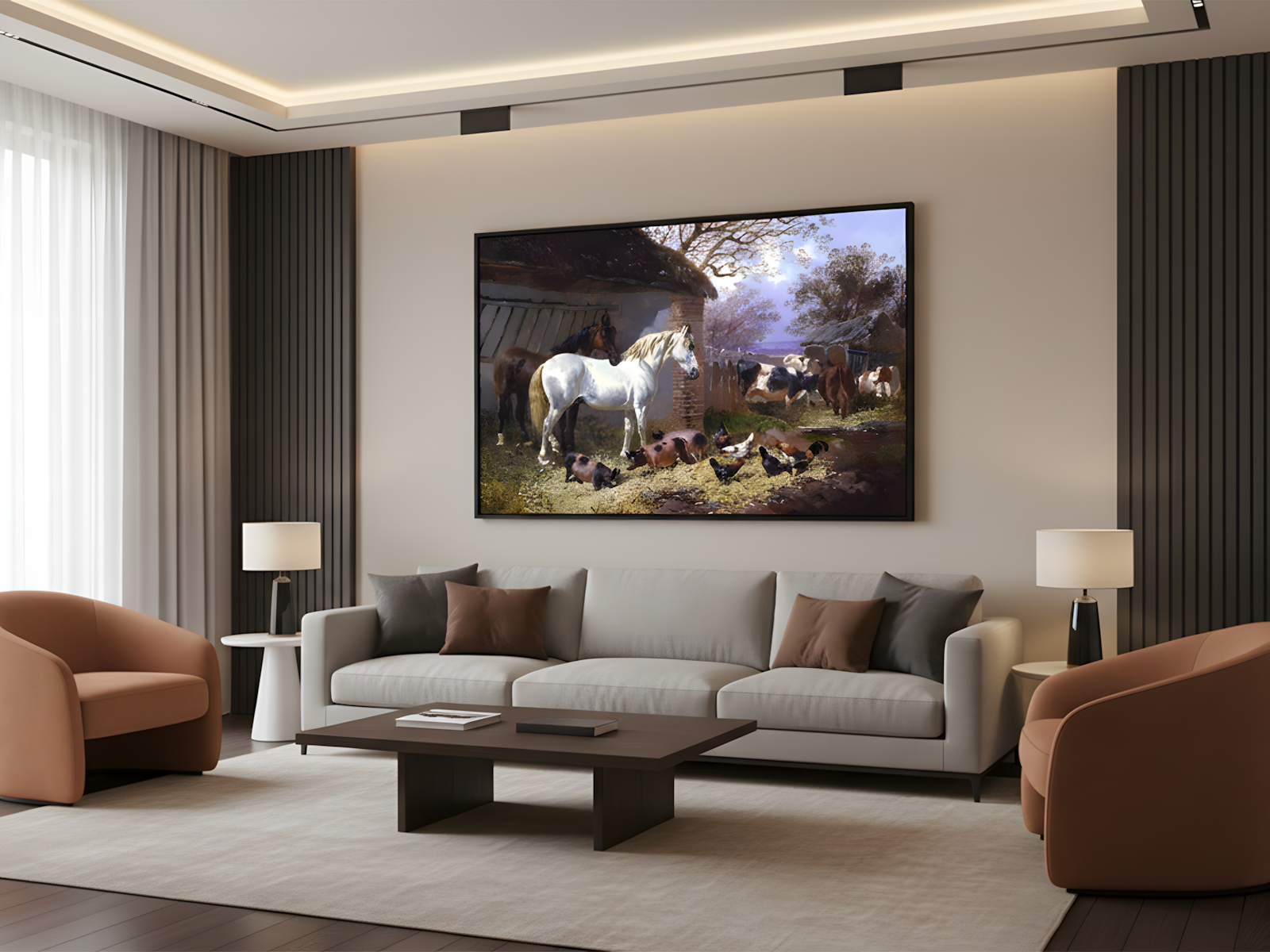 Farmyard, de 1815, é uma obra de John Frederick Herring, o Velho, grande nome da pintura inglesa do século XIX. A tela retrata a vida rural com uma imensa atenção aos detalhes. O objetivo do artista era transmitir a tranquilidade e o realismo do campo. Para isso, ele focou na representação fiel dos animais e na atmosfera pacífica do ambiente. A cena, portanto, exala uma profunda sensação de ordem e harmonia.