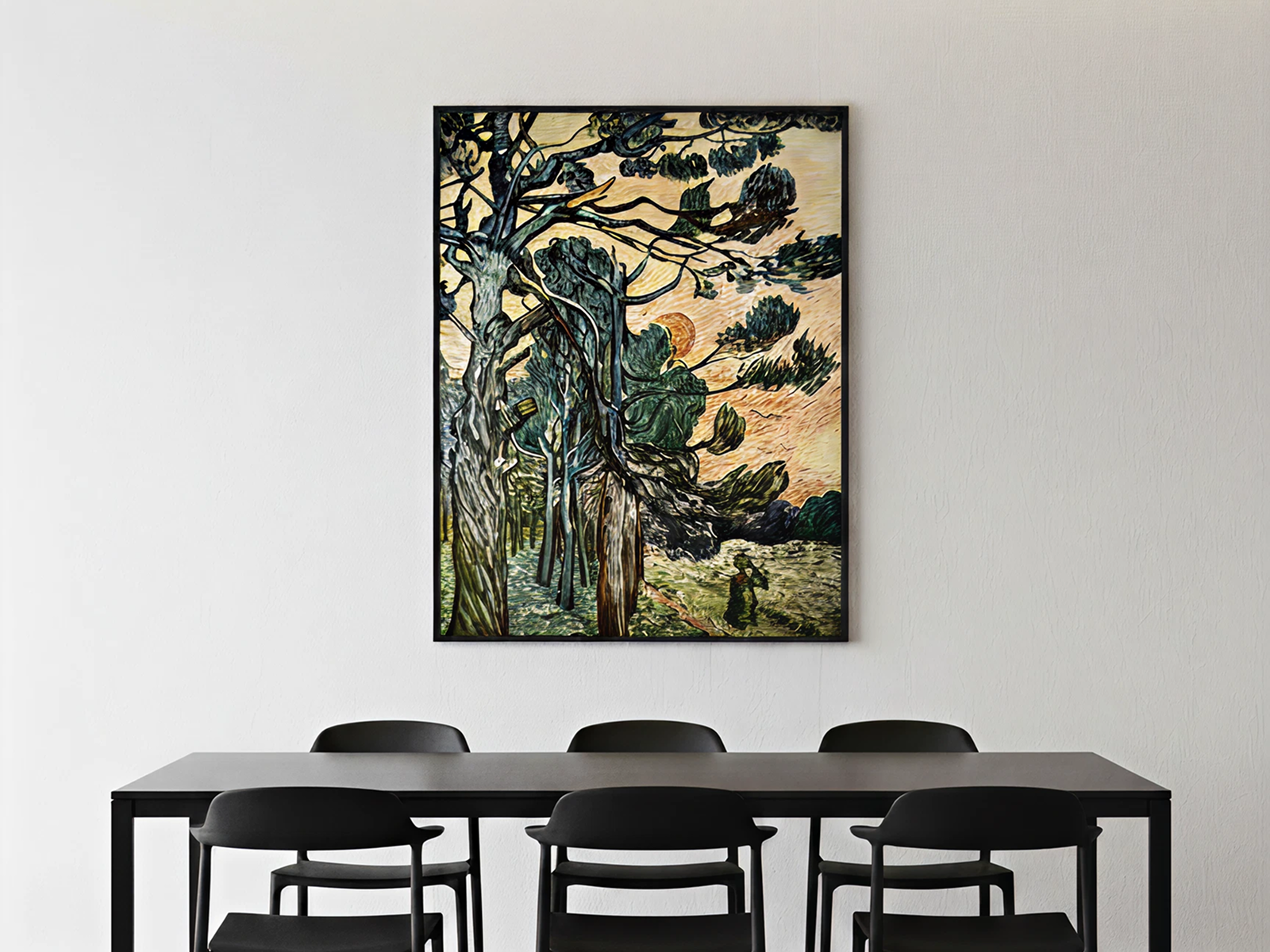 Em resumo, Fir-woods at Sunset demonstra a genialidade de Van Gogh. A obra une de forma magistral sua técnica, sua emoção e o uso simbólico da cor. Portanto, seu impacto visual é imediato e muito poderoso. A pintura impressiona pela sua autenticidade e expressividade inconfundíveis. De fato, a tela consolidou Van Gogh como uma referência do Pós-Impressionismo e um mestre na representação vibrante da luz e da força da paisagem.