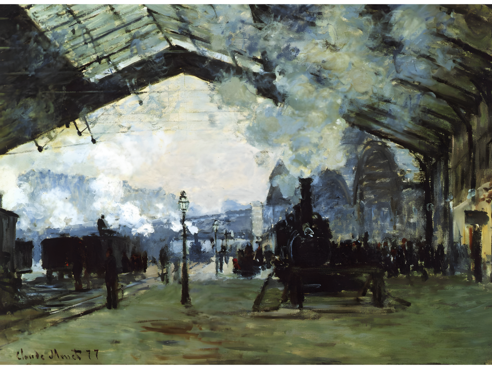 Gare Saint-Lazare: The Train from Normandy, de 1877, é uma célebre obra de Claude Monet. Ela faz parte de sua famosa série sobre a estação ferroviária de Paris. A tela captura, especificamente, a agitação exata da chegada de um trem. Para isso, Monet utiliza pinceladas soltas e muito rápidas. Além disso, sua paleta combina tons de cinza, azul e ocre com maestria. Assim, ele representa a densa fumaça da locomotiva e o contínuo movimento dos passageiros.