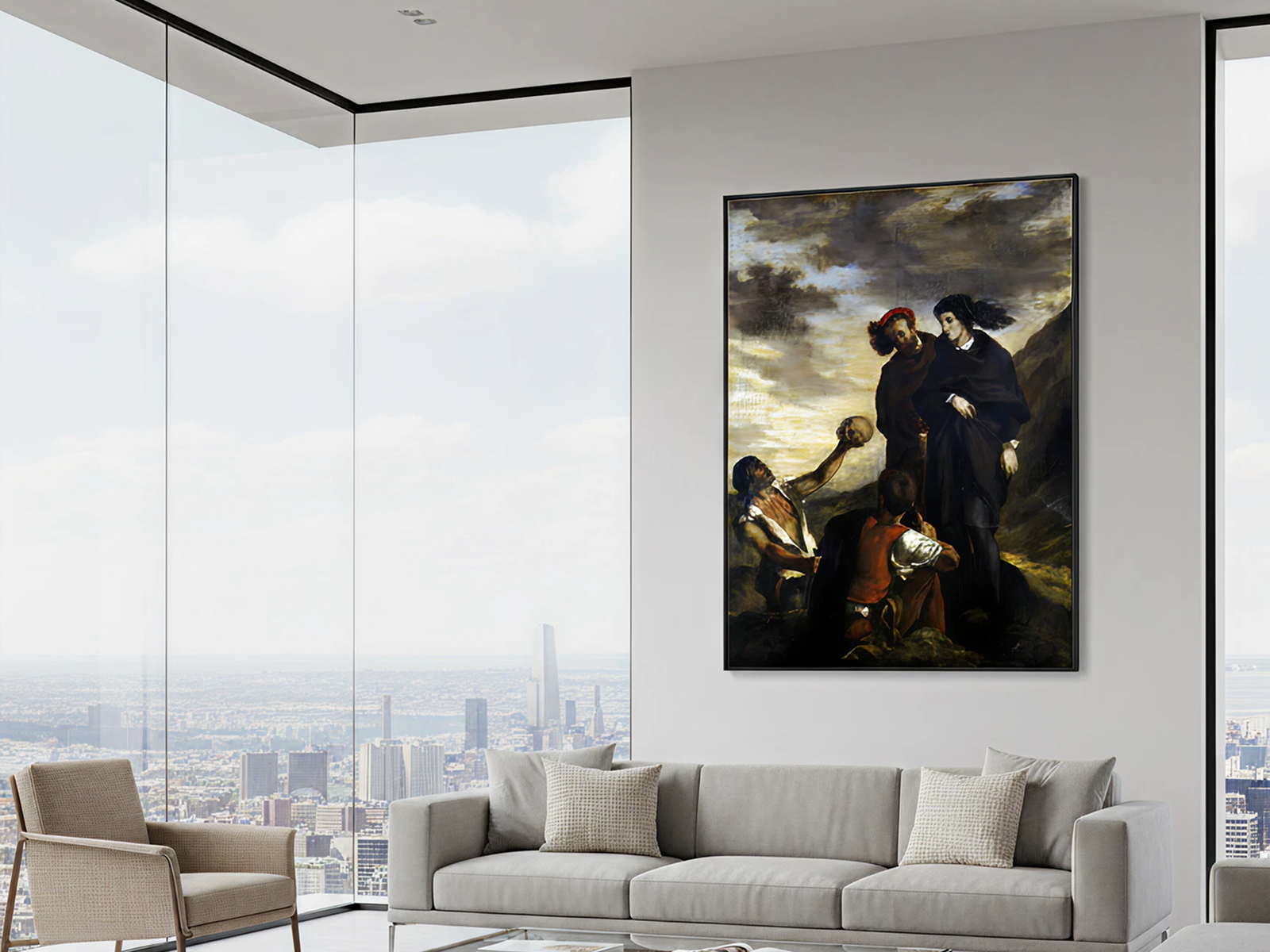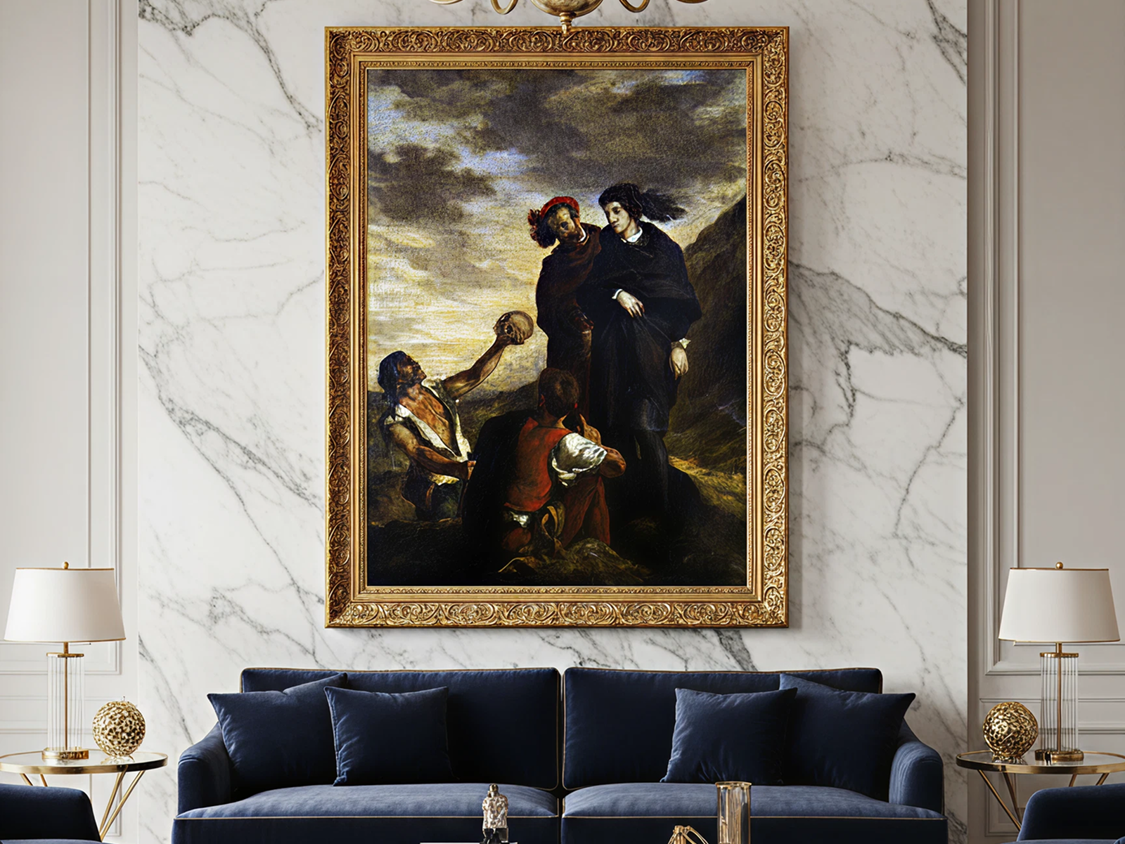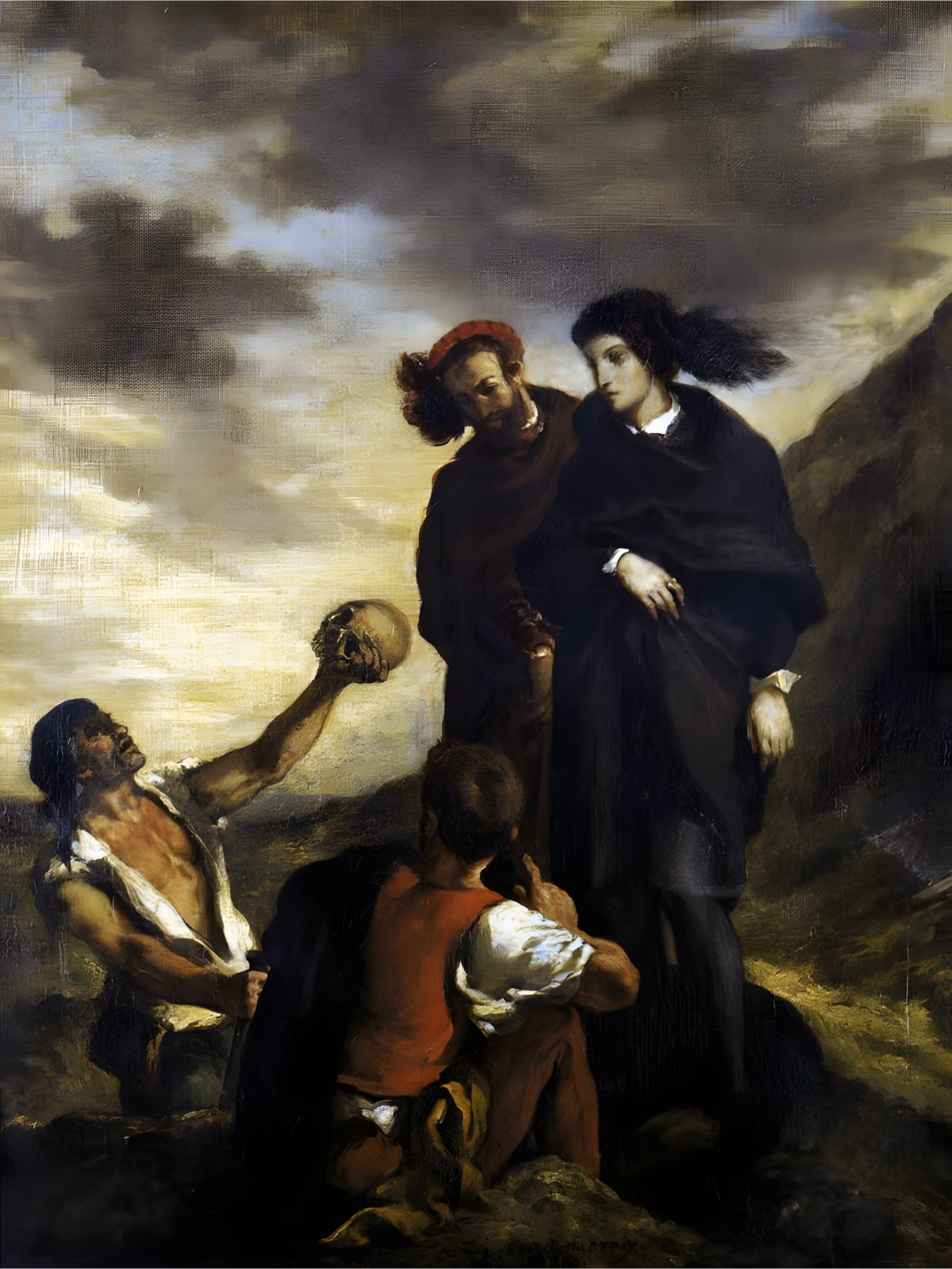 Hamlet and Horatio in the Graveyard, de 1839, é uma obra de Eugène Delacroix. Ela é, sem dúvida, um marco do Romantismo francês. Nesta tela, Delacroix retrata uma cena icônica do clássico de Shakespeare. O artista, acima de tudo, explora a emoção, a tensão e a atmosfera sombria do momento. Consequentemente, a pintura transmite uma energia teatral e introspectiva. De fato, a escolha do tema reflete o fascínio romântico pela literatura.