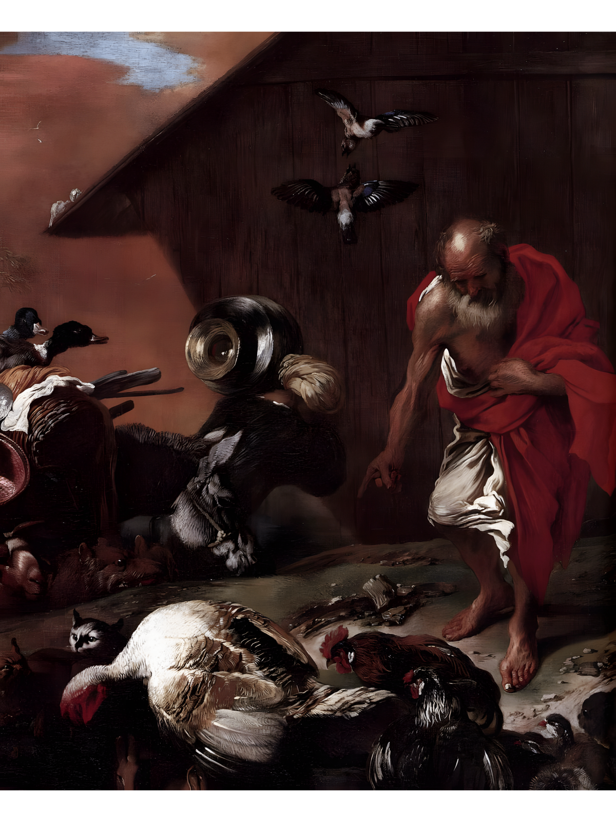 In Front of Noah’s Ark (detail), de 1650, é uma obra de Giovanni Benedetto Castiglione. Ela é, sem dúvida, um marco do Barroco italiano por sua energia e complexidade. Nesta tela, o artista retrata a procissão de animais e figuras humanas diante da Arca de Noé. Seu objetivo principal é explorar a narrativa bíblica com emoção e grande dinamismo. Consequentemente, a pintura transmite um movimento intenso. Acima de tudo, a cena captura um momento de tensão e expectativa.