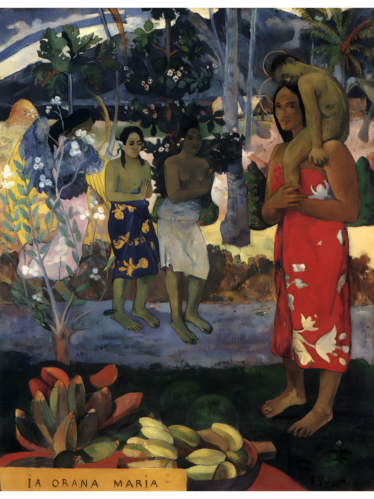 La Orana Maria (Hail Mary), de 1891, é uma obra fundamental de Paul Gauguin. Ela é, sem dúvida, um marco de sua fase no Taiti e do pós-impressionismo. Nesta tela, Gauguin retrata a Virgem Maria e Jesus em um contexto exótico. Seu objetivo principal é combinar a religiosidade ocidental e o simbolismo cultural polinésio. Para isso, ele utiliza cores vibrantes e uma atmosfera tropical. Consequentemente, a obra representa uma poderosa fusão entre o sagrado e o chamado “primitivo”.
