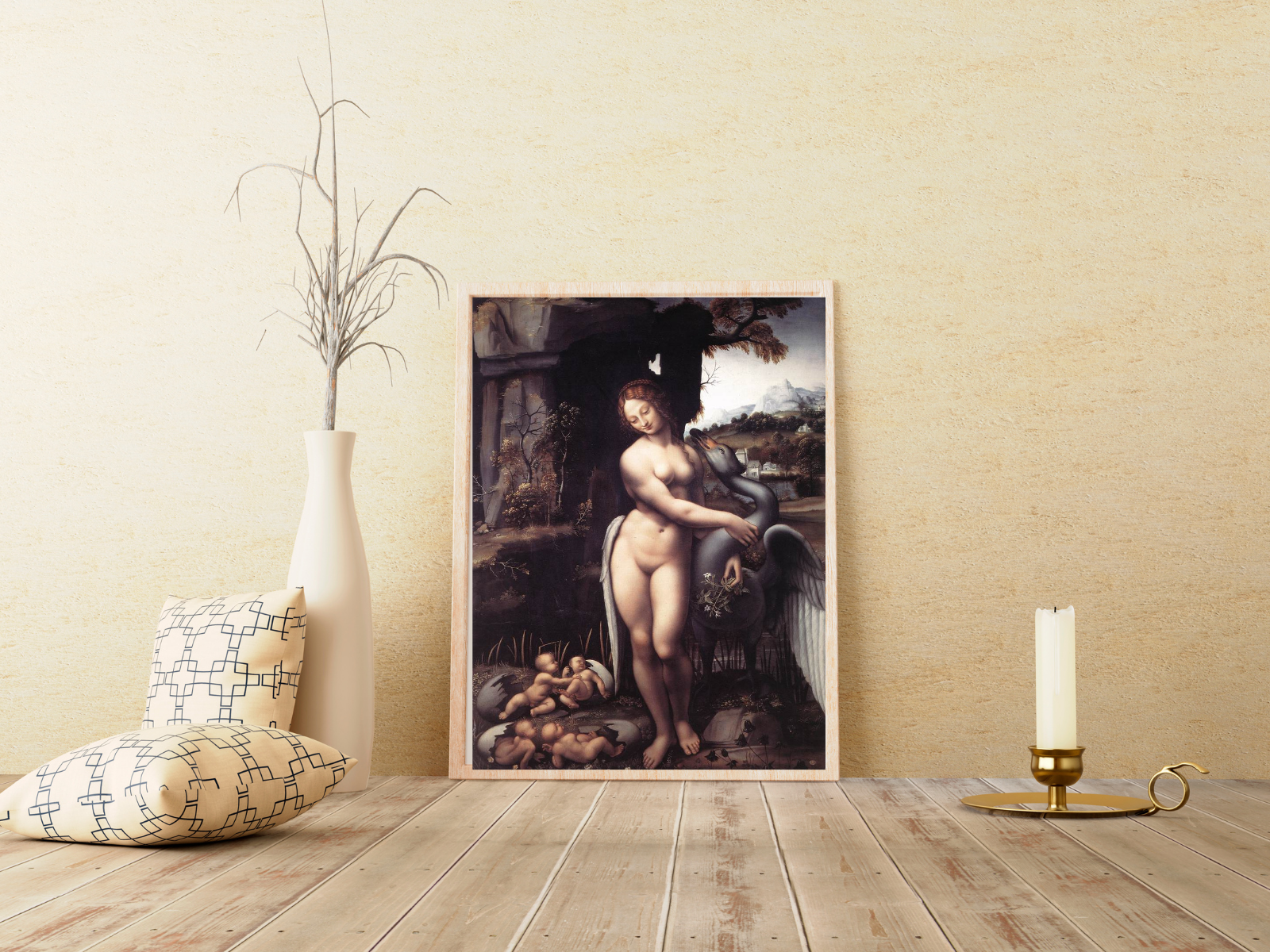 Leda, de 1508, é uma famosa obra de Leonardo da Vinci. Embora a pintura original esteja perdida, conhecemos a composição por meio de seus desenhos preparatórios e de cópias feitas por seus alunos. Nesta obra, o artista retrata a rainha Leda abraçando o cisne, uma forma assumida por Zeus. Seu objetivo principal é explorar a mitologia, a sensualidade e a proporção ideal do corpo. Para isso, Leonardo aplica sua técnica refinada e seu profundo conhecimento anatômico. Consequentemente, a cena transmite uma elegância, uma harmonia e um mistério únicos.