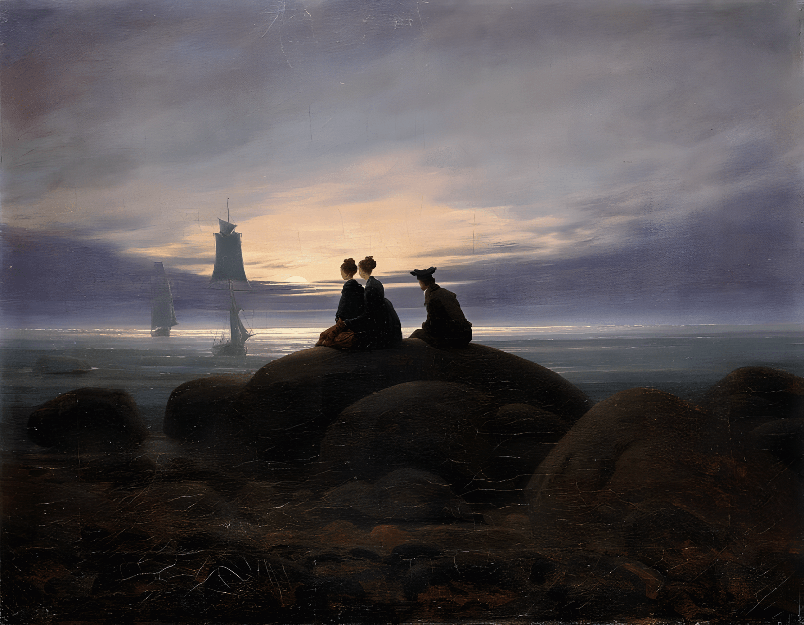 Moonrise by the Sea, de 1822, é uma obra de Caspar David Friedrich. Ela é, sem dúvida, emblemática do Romantismo alemão. Nesta tela, o artista retrata a lua surgindo sobre o mar ao entardecer. Seu objetivo principal é explorar a contemplação, o silêncio e o sublime. Para isso, Friedrich utiliza uma composição que evoca um sentimento de admiração e melancolia. Consequentemente, a obra se torna uma meditação sobre a imensidão.