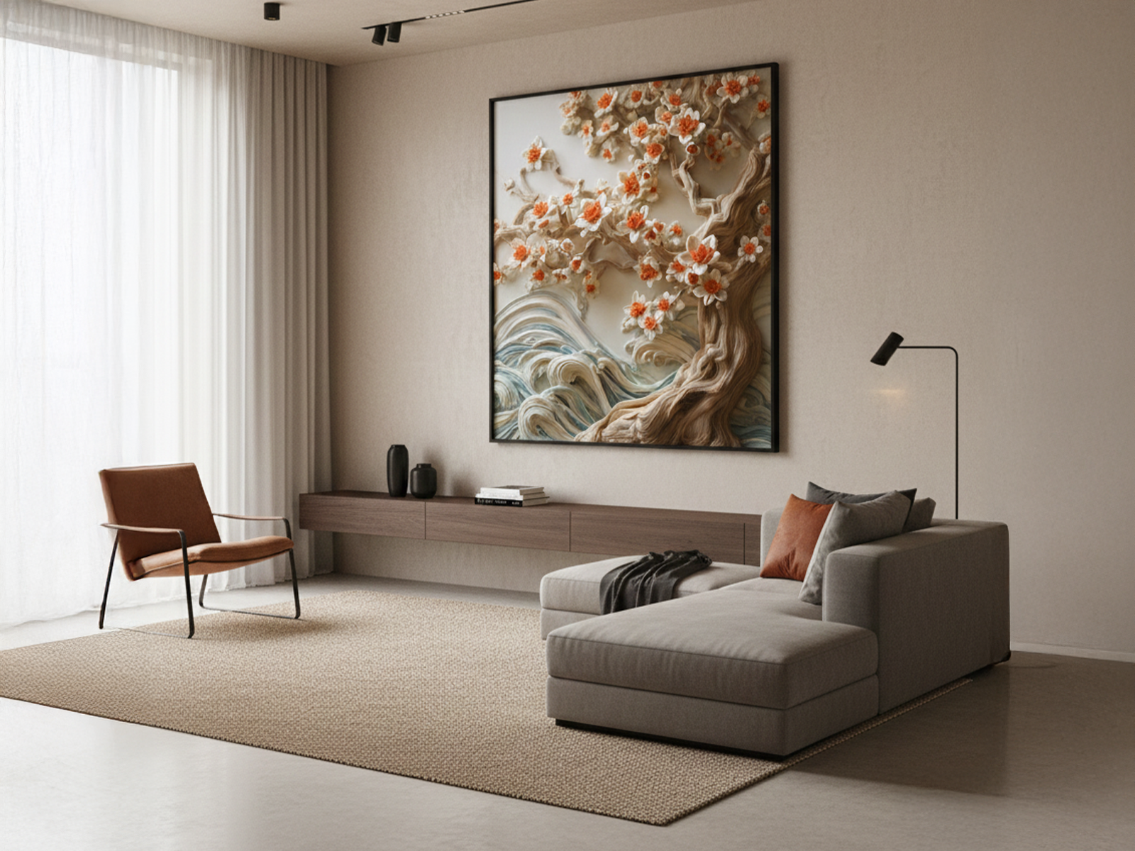 Do mesmo modo, o quadro adiciona calor visual e a impressão de história ao espaço. Ele enfatiza as formas naturais e celebra o trabalho manual por meio de texturas ricas e expressivas. Em síntese, é uma arte que aproxima o observador da terra e do encanto rústico. A riqueza nos detalhes impressiona e inspira. É a escolha ideal para quem aprecia o estilo rústico chique com um toque poético.
