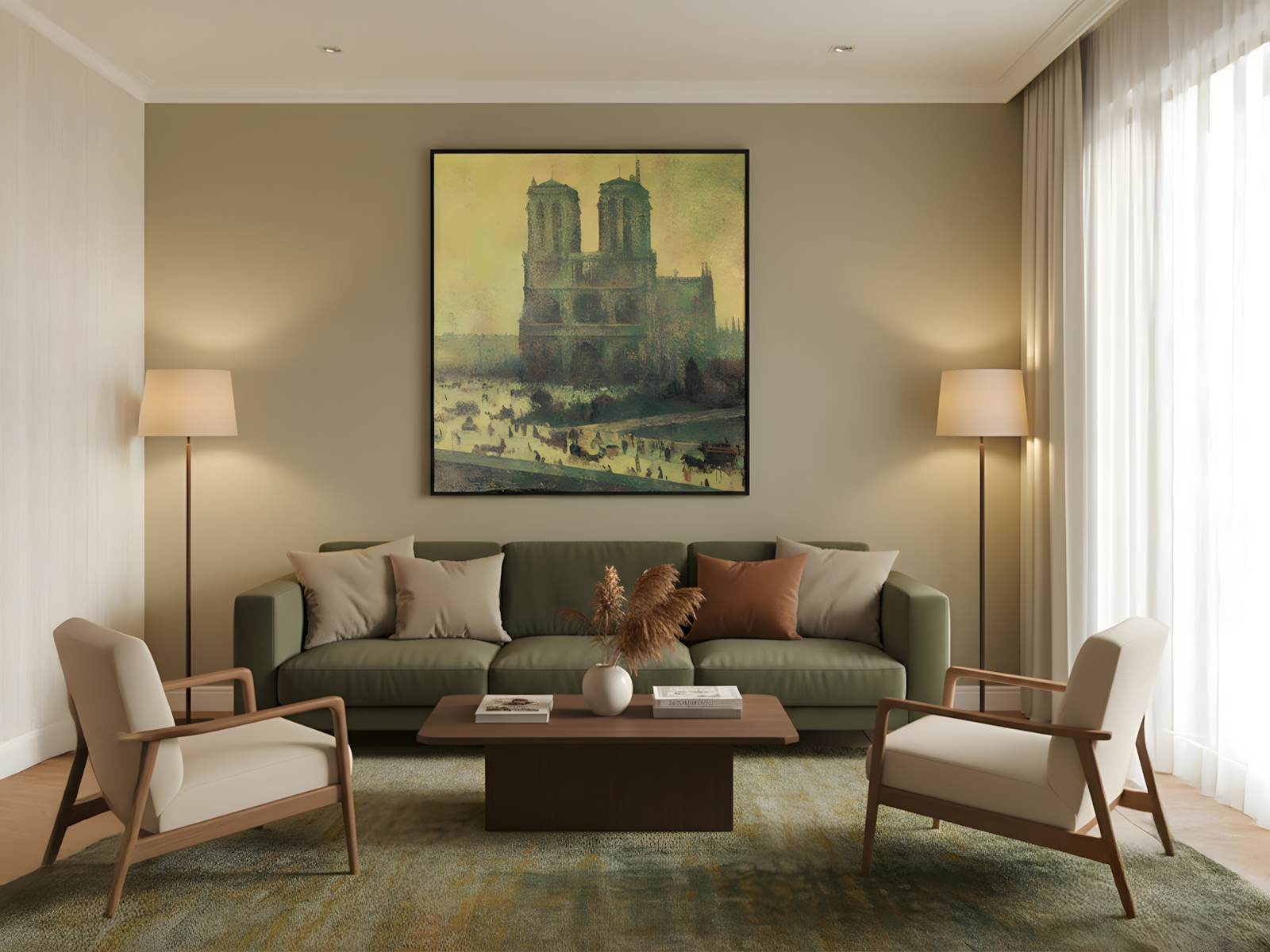 O artista utiliza a técnica de óleo sobre tela com grande habilidade. Ele capta, por exemplo, os reflexos e as sombras na arquitetura gótica. Além disso, ele valoriza a interação da luz com a fachada e os vitrais. A composição, por sua vez, organiza o volume e a perspectiva de forma magistral. Dessa forma, a Notre-dame transmite uma forte sensação de profundidade. A paleta de cores suaves, portanto, confere um belo equilíbrio visual à cena.