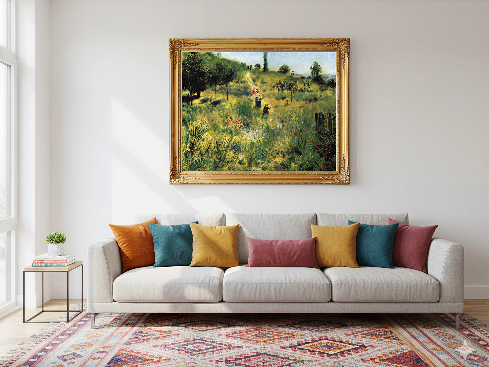 Path through the High Grass, de 1875, é uma obra de Pierre-Auguste Renoir. Ela é, sem dúvida, um exemplo clássico do Impressionismo francês. Nesta tela, o artista retrata uma paisagem com um caminho atravessando a vegetação alta. Seu objetivo principal é explorar a luz, a cor e a atmosfera natural. Para isso, Renoir aplica sua técnica com enorme leveza e espontaneidade. Consequentemente, a pintura transmite uma sensação de frescor e movimento.