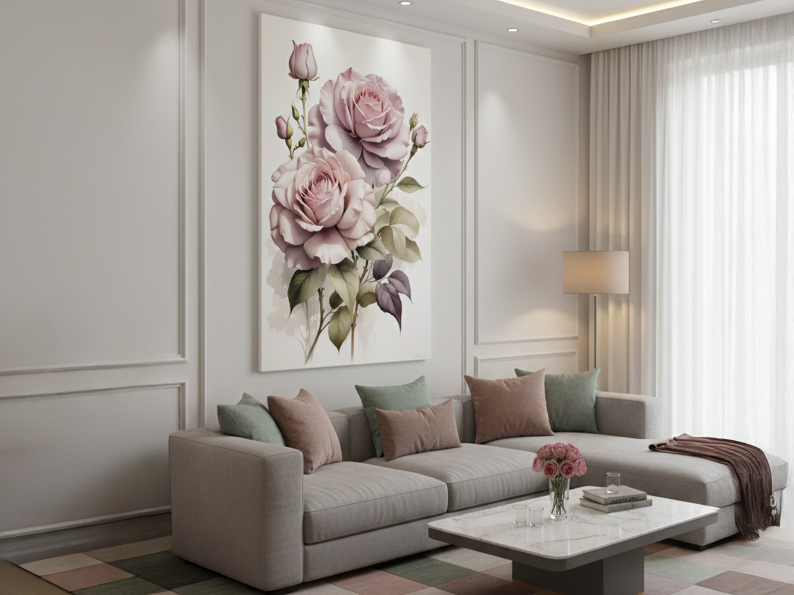 A rosa mantém seu prestígio ao longo das décadas, e essa obra confirma esse encanto eterno. Como resultado, o ambiente ganha elegância imediata. O fundo claro amplia a luminosidade e cria leveza no espaço. Dessa forma, “Rosas Clássicas” celebra a flor mais querida do mundo. Cada detalhe reforça a sensação de ternura. A peça transforma qualquer ambiente em um refúgio de romance e calma.