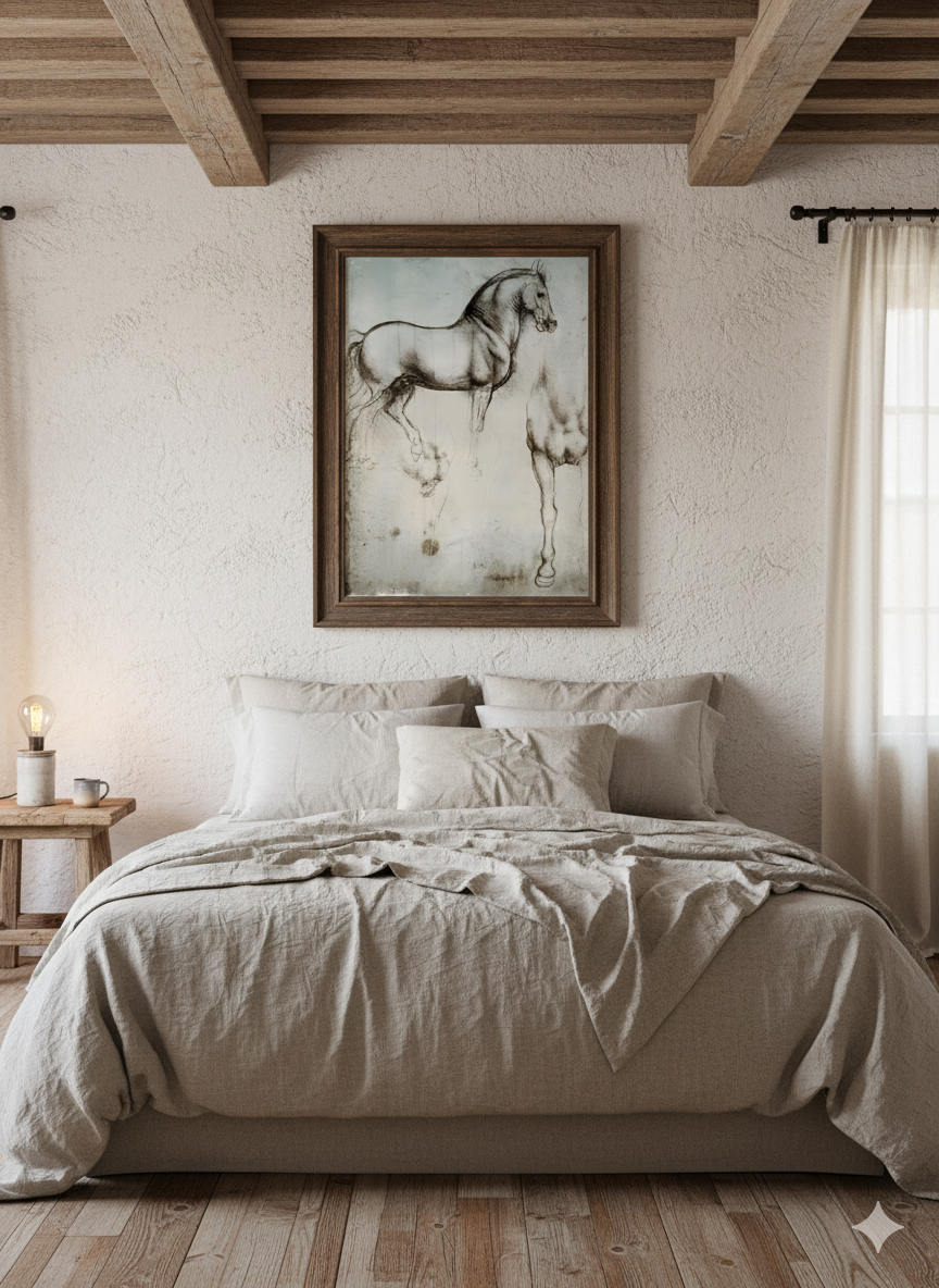 Study of Horses (1490), de Leonardo da Vinci, é uma obra representativa do Renascimento italiano, período marcado pelo interesse em ciência, anatomia e observação da natureza. Nela, Leonardo explora a estrutura equina com grande precisão. Ele analisa ossos, músculos e articulações em diferentes posturas. Além disso, cada desenho demonstra atenção à proporção, equilíbrio e movimento. Assim, o artista combina rigor científico com sensibilidade estética, tornando seus estudos animais também expressões poéticas.