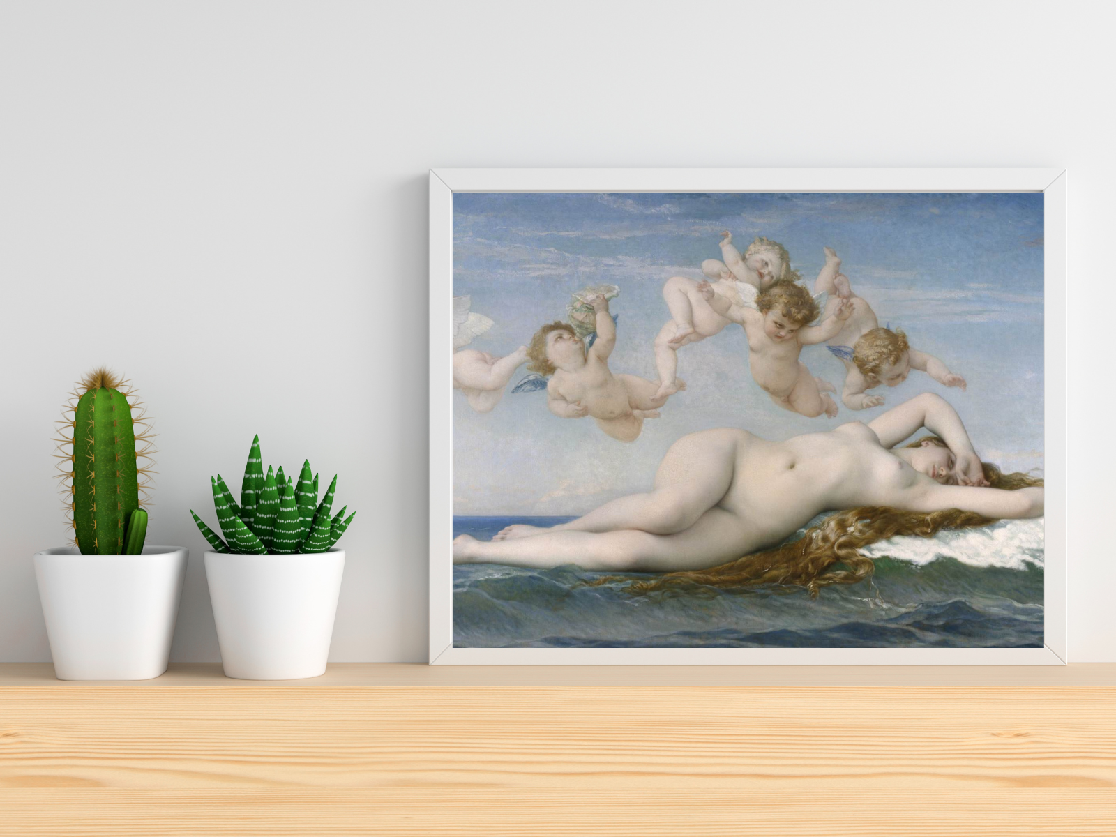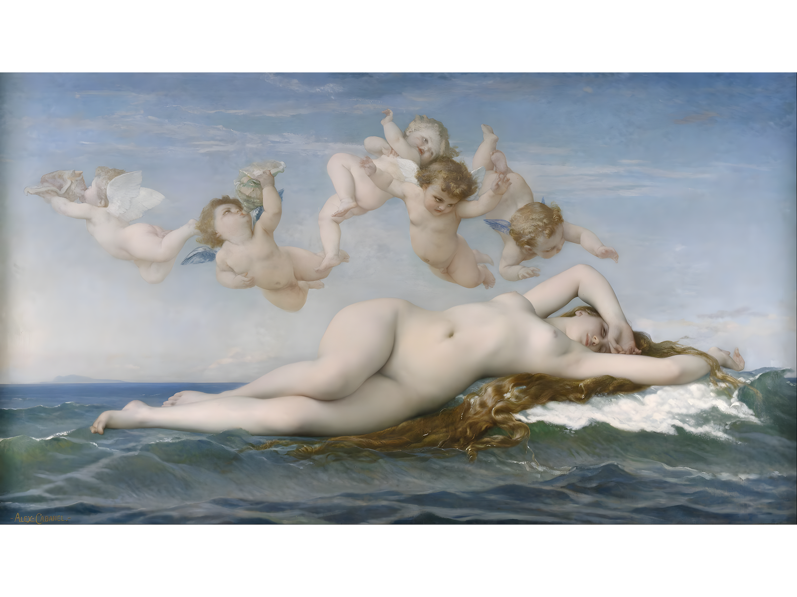 The Birth of Venus, de 1863, é uma obra-prima de Alexandre Cabanel. Ela é, sem dúvida, um ícone do academicismo francês do século XIX. Nesta tela, o artista retrata a deusa Vênus deitada sobre as ondas. Seu objetivo principal é combinar a sensualidade, a elegância e um refinamento técnico impecável. Para isso, Cabanel utiliza uma luz suave que realça a forma delicada da deusa. Consequentemente, a obra alcança um ideal de beleza clássica e etérea.