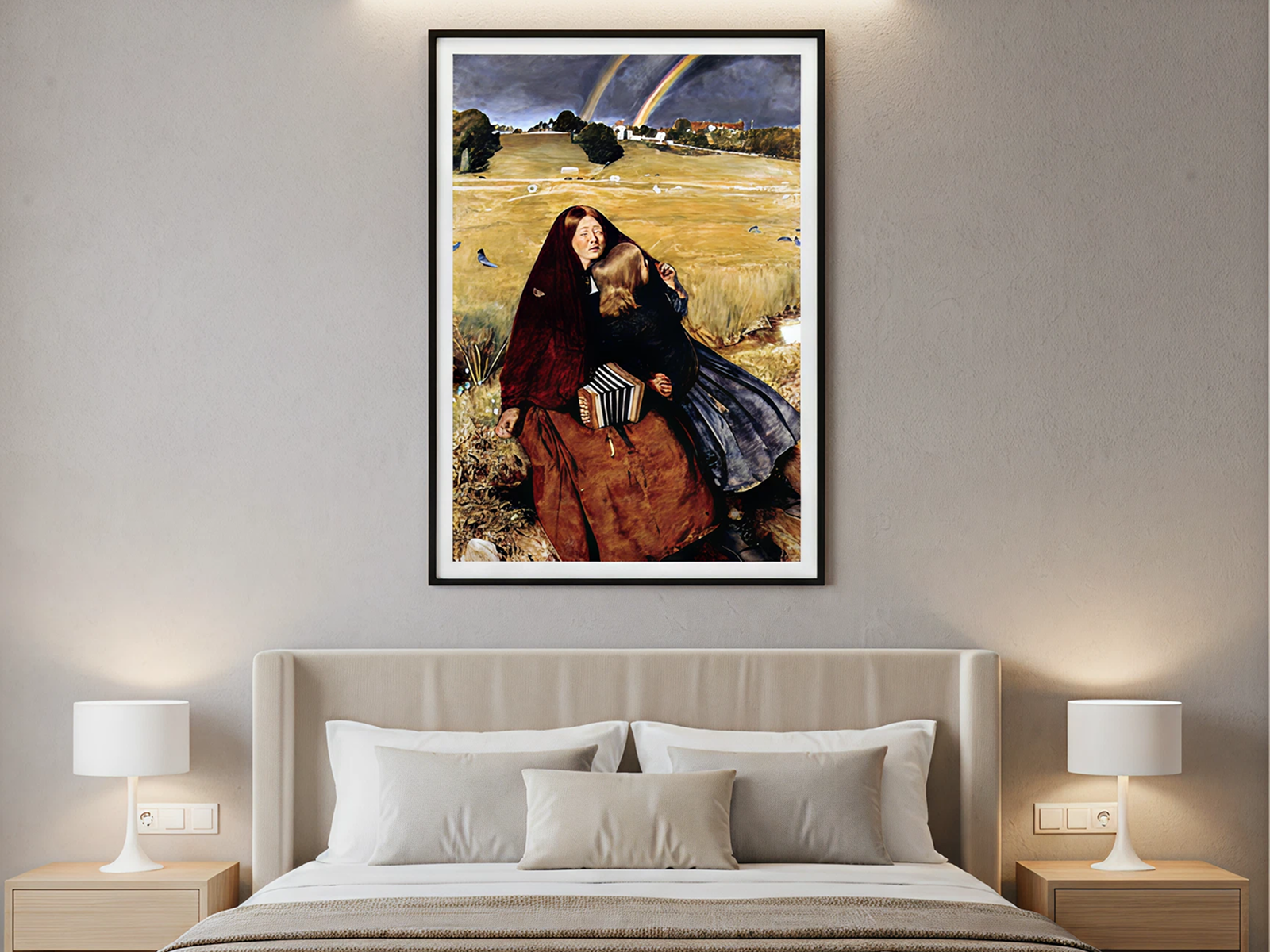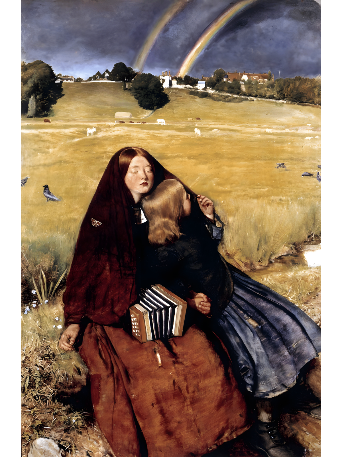 The Blind Girl, de 1856, é uma obra de John Everett Millais. Ela é, sem dúvida, representativa do pré-rafaelismo inglês. Nesta tela, o artista retrata uma jovem cega sentada em uma paisagem rural. Seu objetivo principal é explorar a expressividade, os detalhes e a atmosfera poética. Para isso, Millais aplica sua técnica com um refinamento impressionante. Consequentemente, a obra transmite uma profunda sensibilidade emocional.