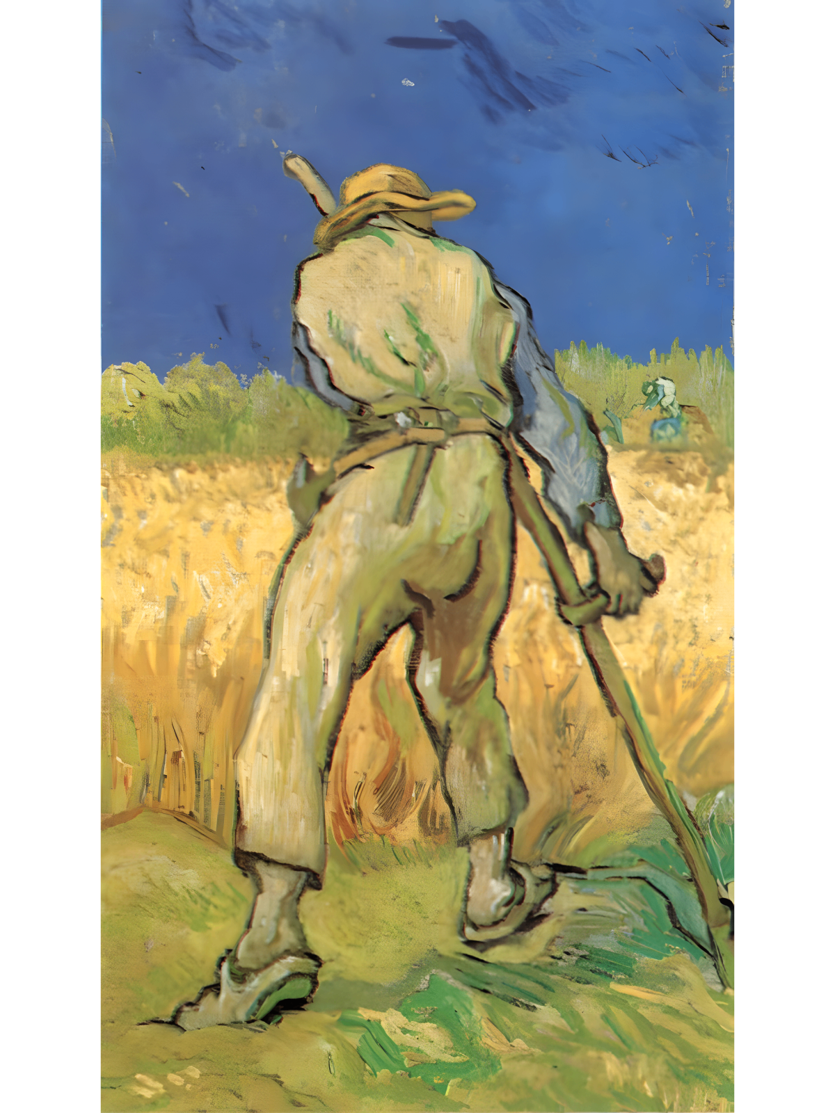 The Reaper (after Millet), de 1889, é uma obra de Vincent van Gogh. Ela é, sem dúvida, uma de suas mais belas homenagens a Jean-François Millet. Nesta tela, Van Gogh retrata um ceifador trabalhando em um campo de trigo. Seu objetivo principal é explorar o movimento, a luz e o simbolismo do trabalho. Para isso, ele reinterpreta a composição de Millet com sua paleta de cores vibrante. Consequentemente, a obra ganha uma nova e poderosa dimensão espiritual.