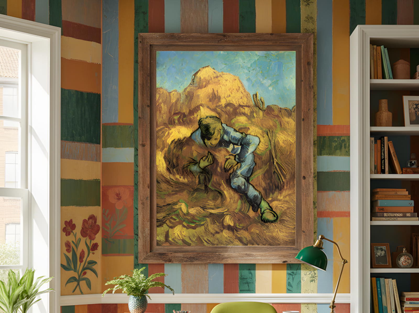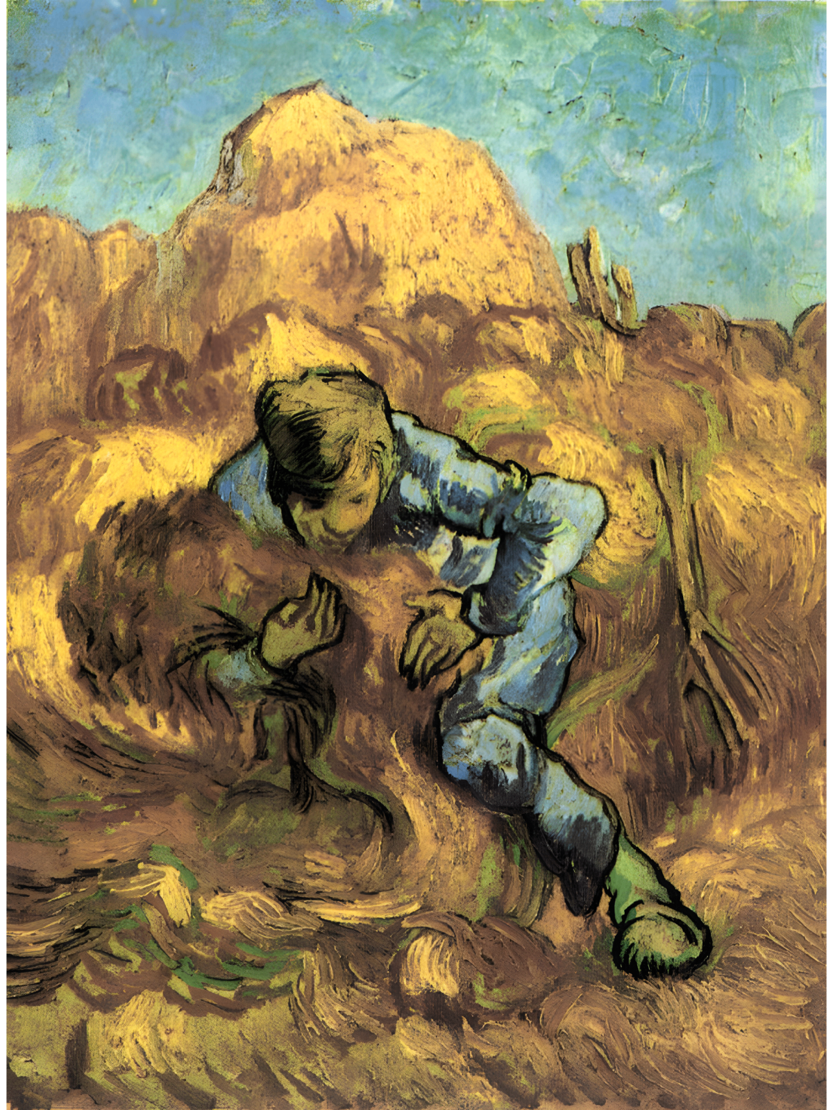 The Sheaf-Binder (after Millet), de 1889, é uma obra de Vincent van Gogh. Ela faz parte, sem dúvida, da série de reinterpretações de Jean-François Millet. Nesta tela, o artista retrata um trabalhador rural amarrando feixes de trigo. Seu objetivo principal é explorar o movimento, o trabalho e a conexão com a terra. Para isso, Van Gogh infunde a cena com sua própria energia e cor. Consequentemente, a obra ganha uma nova força expressiva.