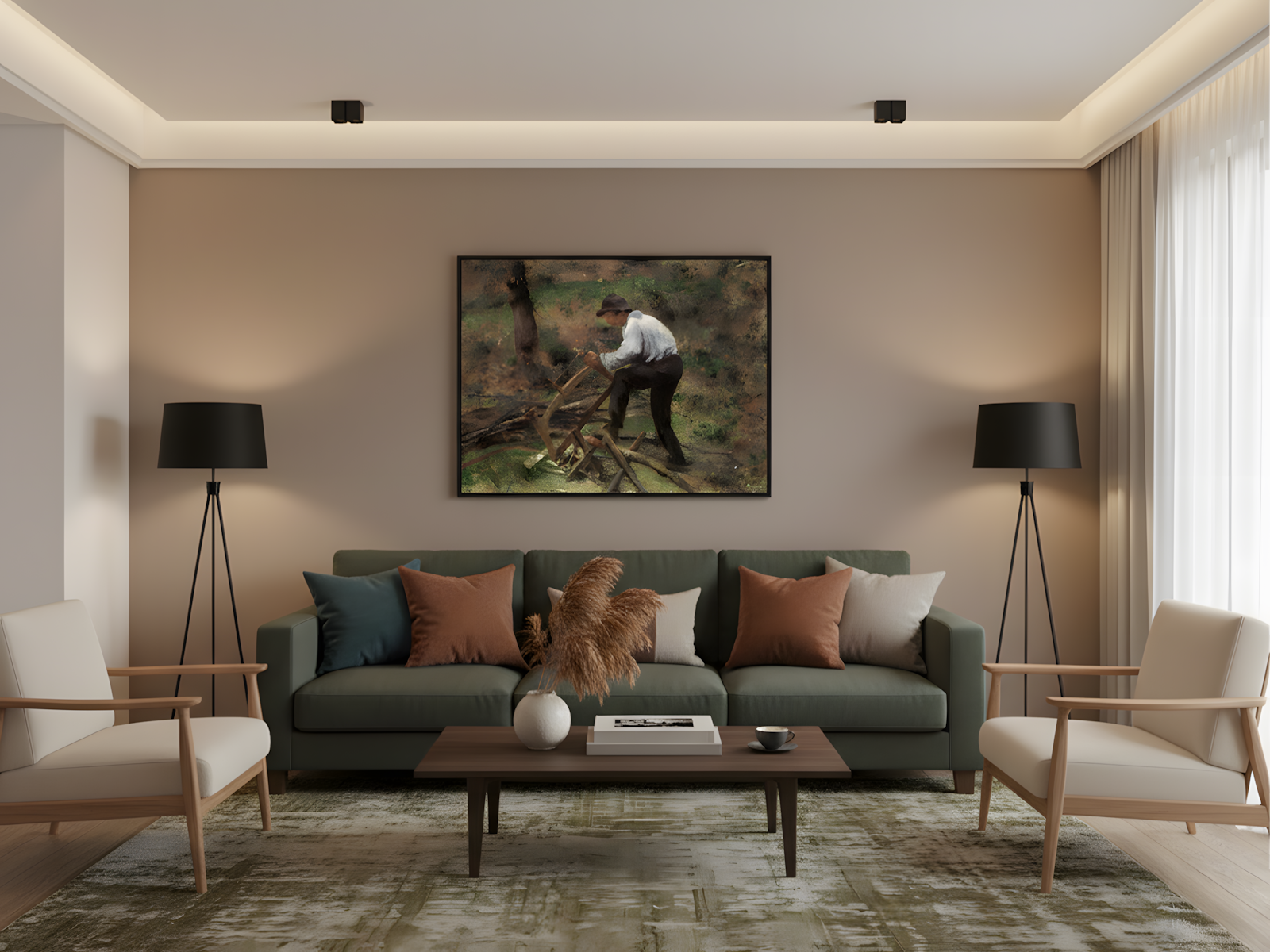 O artista utiliza a técnica de óleo sobre tela com grande maestria. Ele cria, por exemplo, um forte contraste e realismo na figura e na paisagem. Além disso, a composição organiza o lenhador e os elementos naturais de forma equilibrada. Essa estrutura transmite um ritmo visual e uma grande harmonia. A paleta de cores, por sua vez, combina tons terrosos, verdes e azuis. Dessa forma, ela reforça a conexão do homem com o ambiente.
